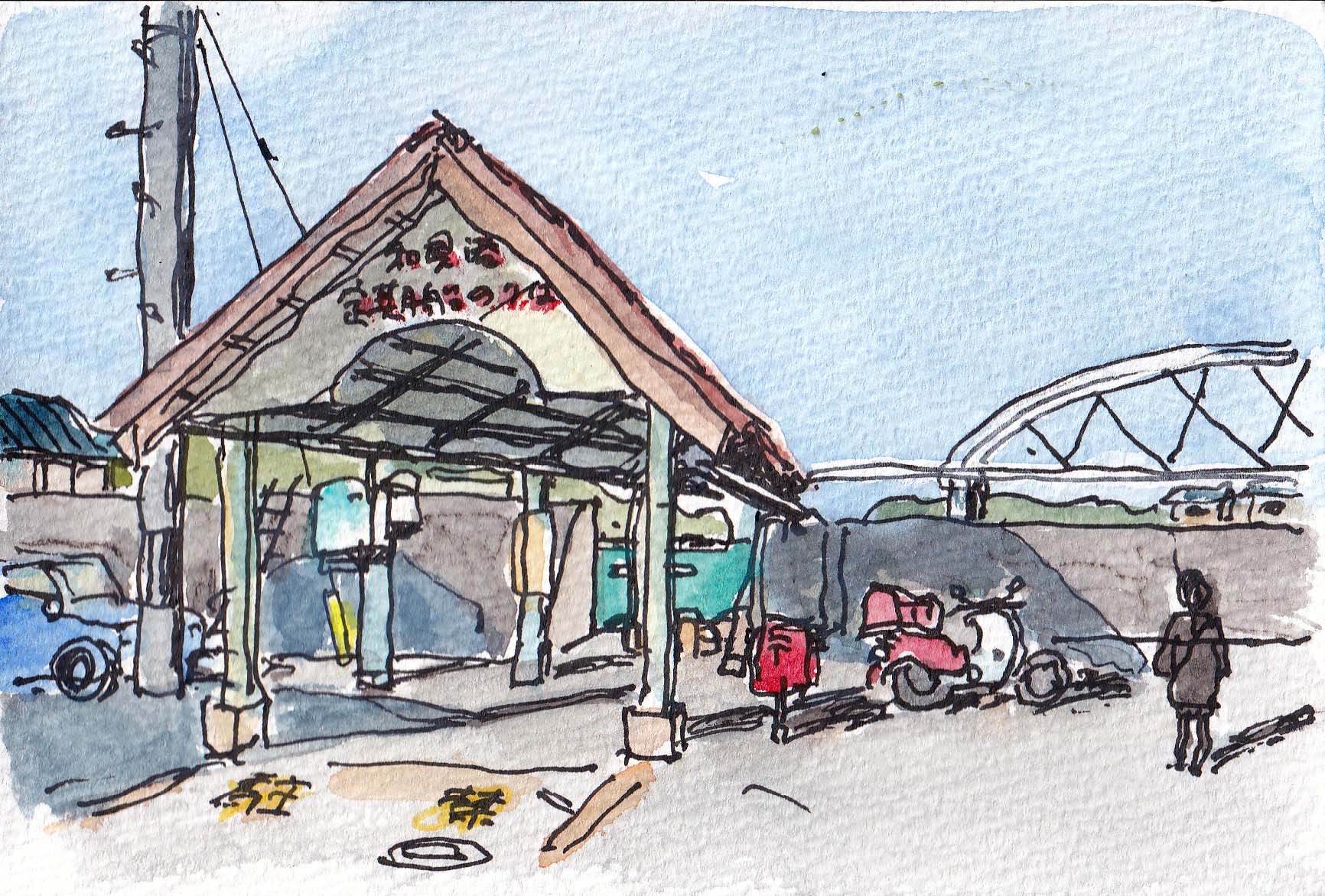 近鉄「宇陀」の観光案内所で聞いたら、和具のバス停から渡船乗り場までは歩いて15分程度とのことだったが、実際にははるかに遠かった。目抜き通りの筈だが、どの店もシャッターが下り 廃業していた。私の30年前の記憶では活気があったのだが・・・。1軒だけ魚屋が開いていて鮮魚を並べていた。「カマス6匹500円」の表示を見て妻が「東京では1匹350〜400円している」と言う。壁には現在の皇太后ご夫妻が天皇陛下の時代に この地に来られた時の大きな写真が貼ってある。「ついこの間よ」とお婆ちゃんが言う。 辿り着いた渡船乗り場には若者が二人居た。思わず「こちらのご出身ですか?」と聞いてしまった。「自分らは名古屋の会社の者ですが、この地の商船高校へ求人に来たのです」。今回の旅行 高齢化・過疎化の現実を見せつけられた。政治にもこの流れを変える力は無いだろうと気が滅入った。(2025-11-14載)