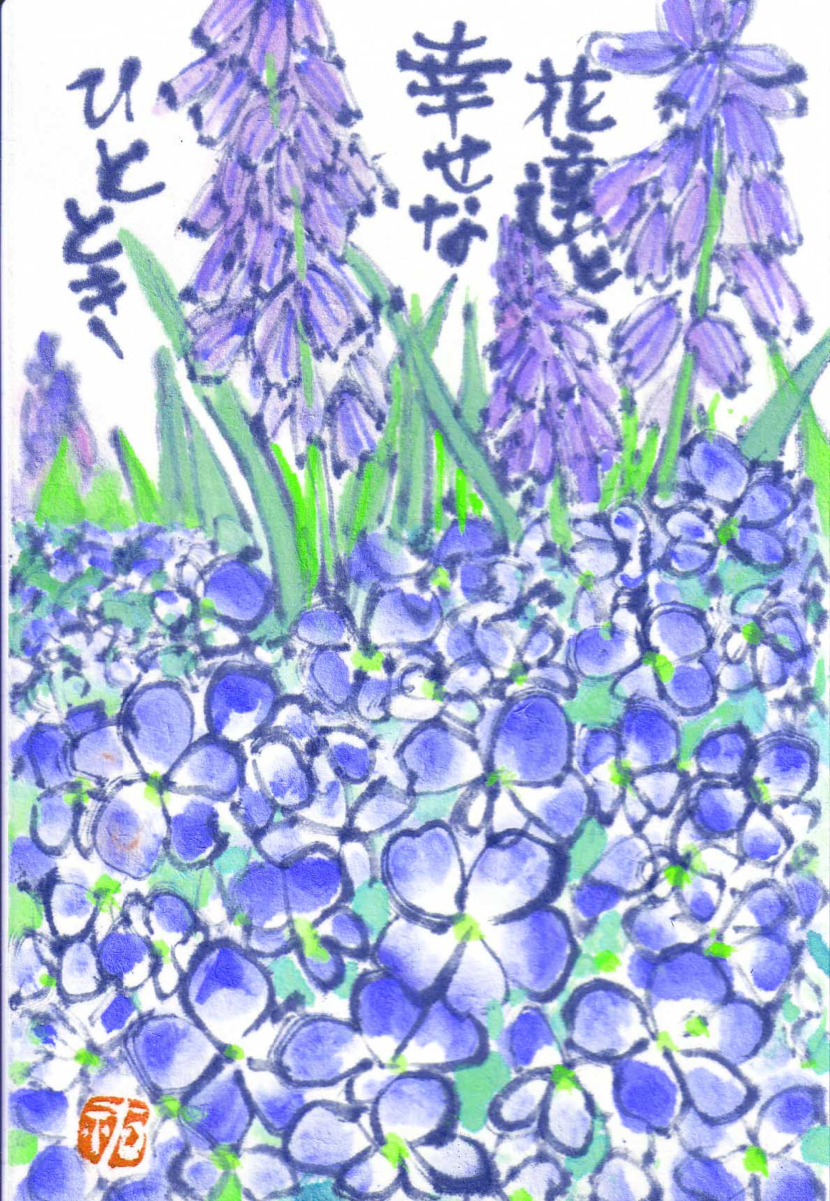 昨秋の播種から育てたネモフィラ。わがやの庭には、このネモフィラをはじめ球根育ちのシラー、青紫の諸葛菜などが咲き、青や紫の濃淡織り交ぜた賑やかな競演を繰り広げています。