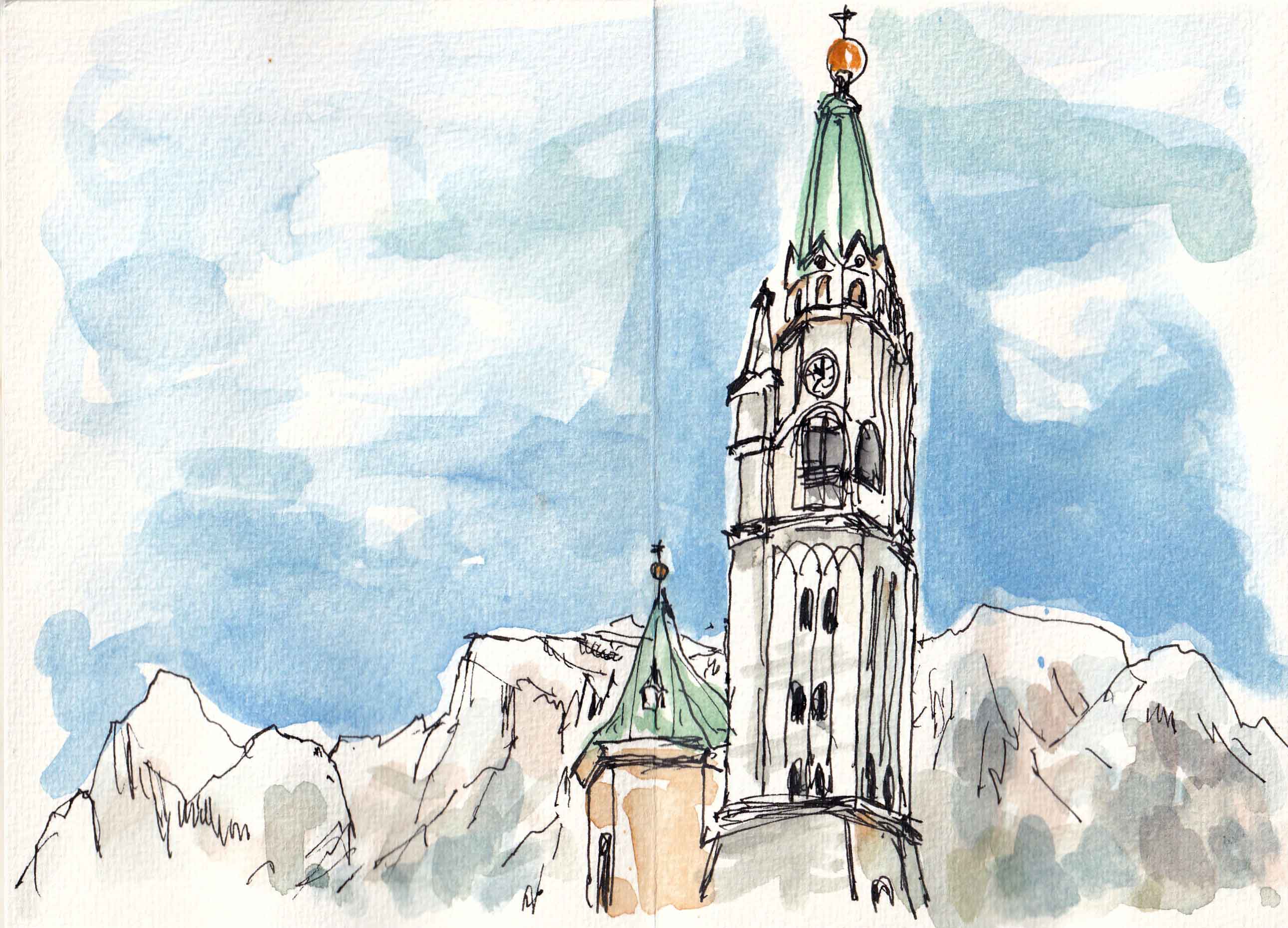 晴天に恵まれ教会の塔が 青空に高く聳えていました。(2026-1-24載)