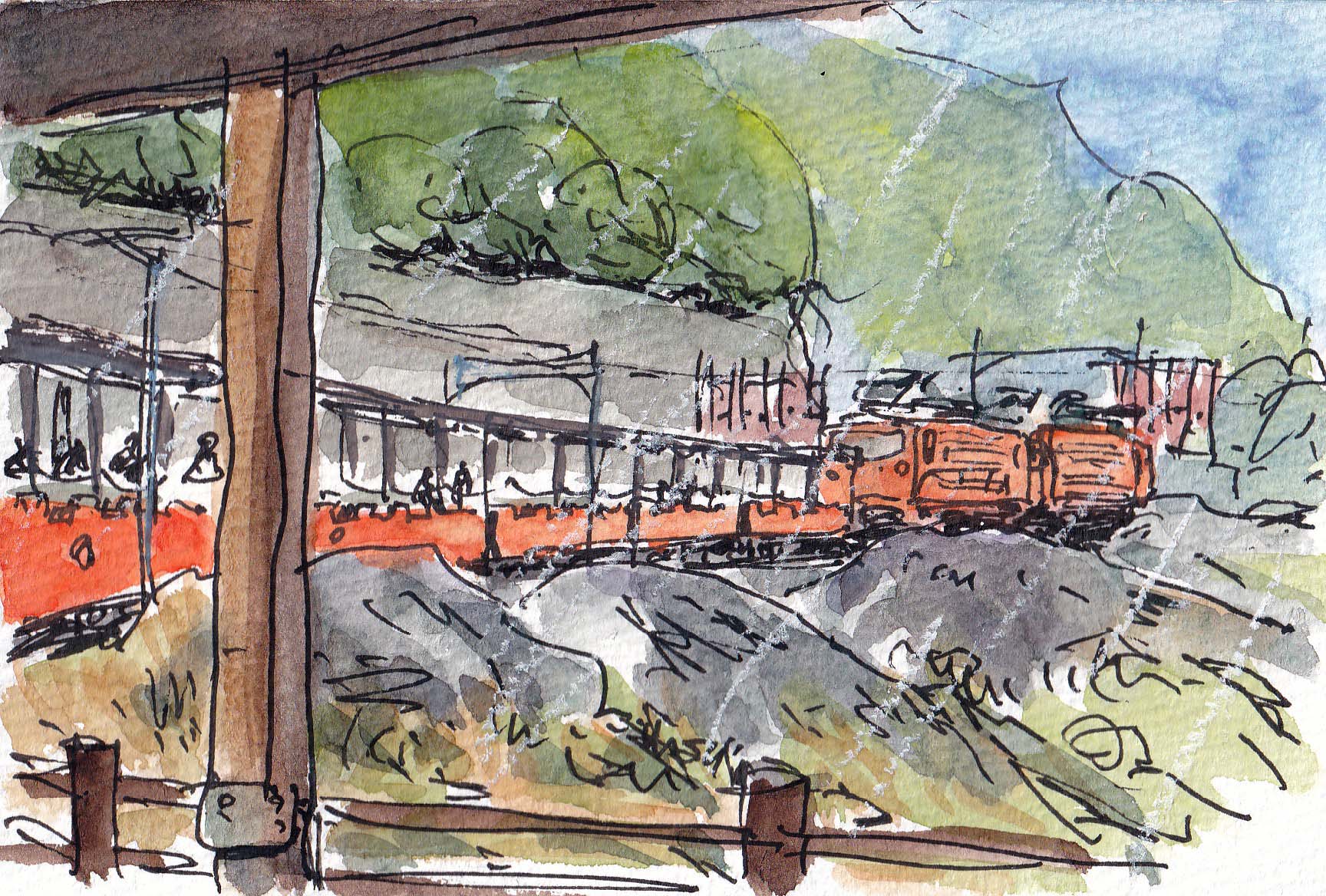 今回のツァー初日は雨、黒部峡谷鉄道のトロッコ電車に乗車。雨のため多くの客はガラス窓付きの客車を選びましたが、私たち夫婦は吹き込みもある貨車のような車両に。乗る人が少ないので長い座席を独占。真ん中に座り雨合羽着用したら、吹き込みも全く問題ありませんでした。ここへきて初めて知ったのですが、昨年の能登地震でトロッコ路線の先半分は崩落し、現在修復中だがいつ再開できるか未定とのこと。黒四ダムを造るためにトンネルを掘りこの鉄道を敷設し、建設資材とマンパワーを送り込みました。その辺の苦労は小説や映画で知る通り。大きな建機・重機も小さくバラシてこの鉄道で運び、現地で組み立てたと聞き、その人智と苦労を再認識しました。紅黄葉は未だ。(2025-10-26載)