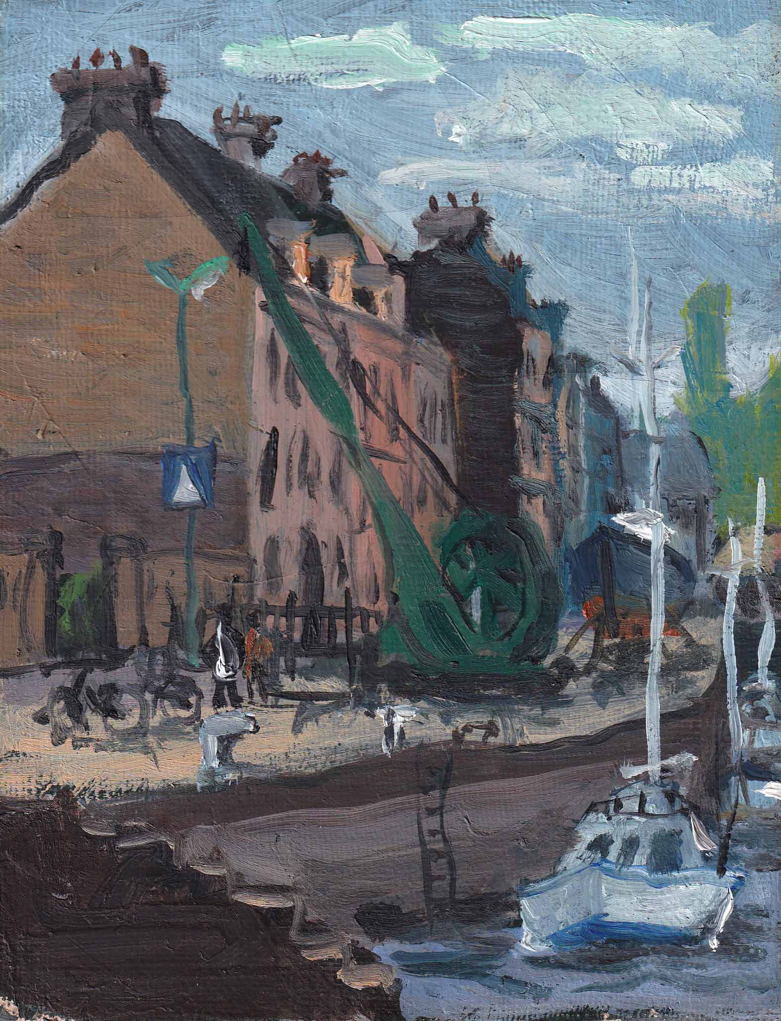 大國先生は鋭い批評はするものの、私が描いたものを手放しで褒めることは殆どなかった。ノルマンディーの取材旅行で、沢山のスケッチを描く私に関心を持ったらしく、「君 油絵を描いてみないか。スケッチと同じ要領で油絵の具をテレピン油で薄め、自由に描いて持って来てごらん」。2〜3か月後 私はF8号のキャンバス約10枚を描き上げ、お宅に伺った。「こんなに沢山 持ってくることは無い。普通は2〜3枚持ってくるものだ」と言い、余り見てもいないような感じで、絵を左から右へと移していった。「しかしガッカリしたな。もっと良い絵を描いて来ると期待していたのだが」と言ったのち、小さな0号の絵に目を止めた。それは余った絵具を捨てるのは惜しく、後始末のつもりで小さなキャンバスに ノルマンディーの小さな港を描いたものだった。「この絵は良い! 油絵を20〜30年描いた人の絵だ!」 その後 評価される絵を描き上げる前に、先生は亡くなられてしまった。(2026-1-25載)