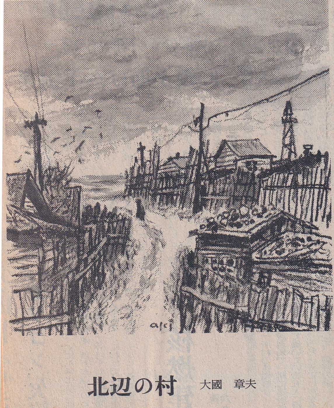 30年位前に、私は日経新聞日曜版の文化欄見出しに載る10センチ角のカットを興味深く見ていた。その中で「大國章夫」という画家のスケッチに強く惹かれていた。その絵には、いつも季節の風が吹き、自然への愛情が溢れていた。 ある時 新聞の片隅に「大國章夫展」の案内が小さく載った。銀座裏の小さな画廊を訪ねると、ひとり背の高い画伯が身を折り曲げるように長椅子に座っていた。私が先生のカットをほぼ全部切り抜いて大切にしていると話すと、大変感激してくれて、売り物の画集にサインをして贈呈してくれた。「君 家はどこか?調布なら甲州街道1本で来れる。私は国立の青柳だ。遊びに来給え」。 その秋 画伯から新制作協会の仲間とノルマンディーに取材旅行するが 君も参加しないかとお誘いを受けた。勤めも終わっていた私は 喜んで夫婦で参加した。そこから先生との濃密なお付き合いが始まった.(2026−1−21載)